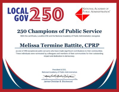 Melissa Termine Battite Named One of America’s 250 Public Service Champions by Local Gov 250 and the National Academy of Public Administration