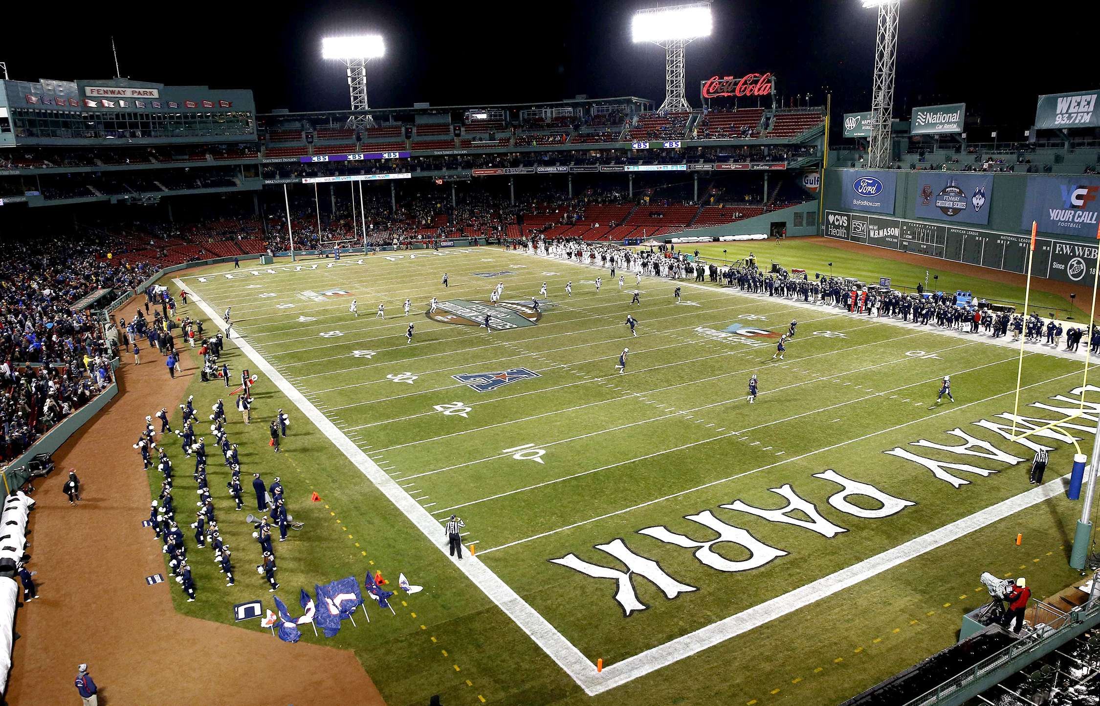 Fenway’s gridiron will be all set up by Nov. 15, when the Coast Guard Academy faces the Merchant Marine Academy in the Secretaries’ Cup. The following Saturday, Holy Cross takes on Georgetown, with the college football action concluding Dec. 27 with the Fenway Bowl.