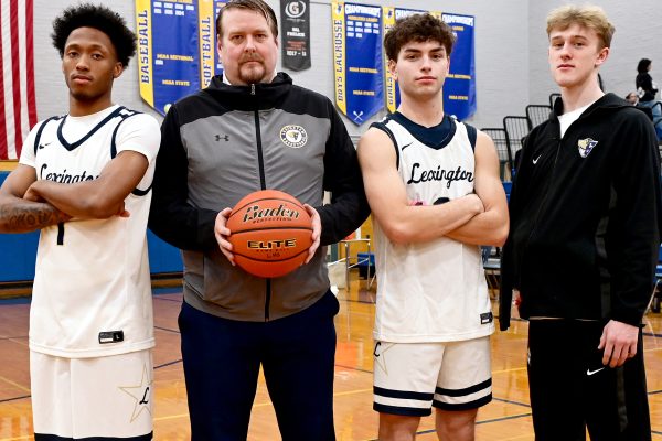 25/26 team captains: Amari Mow, Head Coach Reggie Hobbs, Sam Myerberg, and Charlie O’Brien. Photo by Mark Bellino Senior players include (L to R) Maddox Gruskin, Brendan Schwartz, Amari…