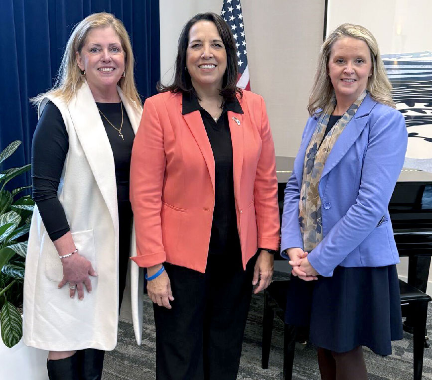 Melissa Battite (left) and deputy town manager Kelly Axtell (right) are pictured with Lieu-tenant Governor Kim Driscoll, a speaker at the WILL graduation ceremony.